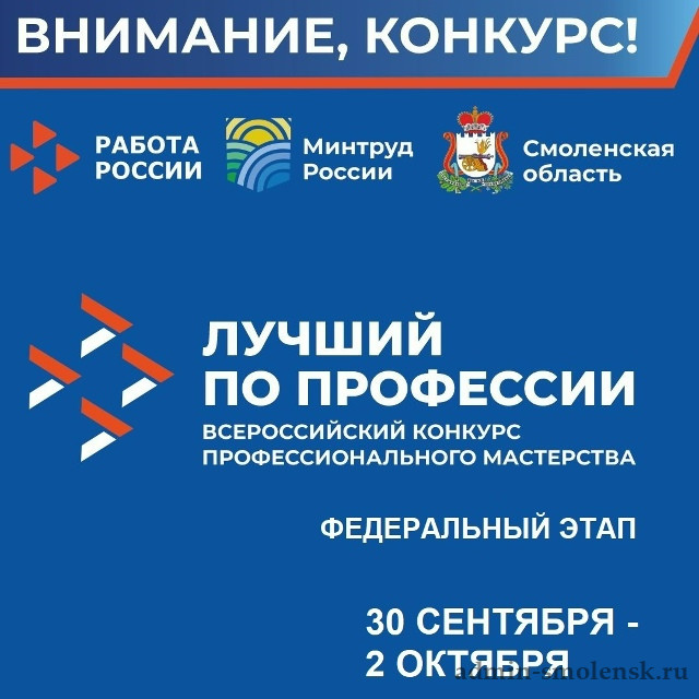С 30 сентября по 2 октября в городе Смоленск состоится федеральный этап конкурса профессионального мастерства «Лучший по профессии». Это уникальное мероприятие соберёт талантливых специалистов, стремящихся подтвердить свой высокий уровень квалификации.